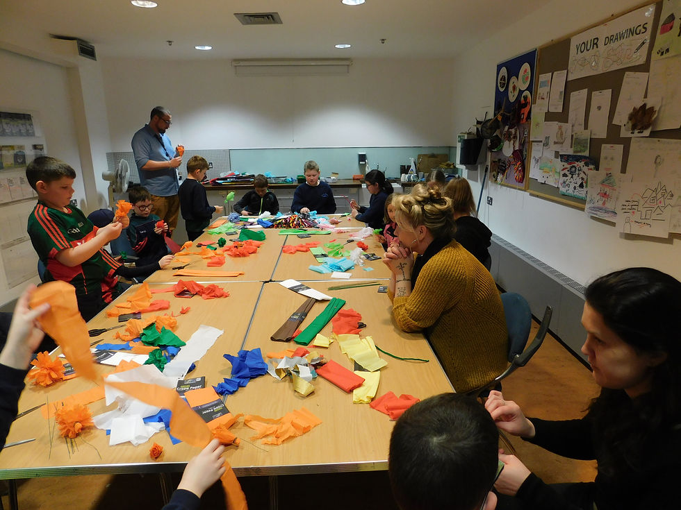 National Museum of Ireland - We visited the Travellers’ Journey exhibition to hear about Traveller customs and traditions. We learned about some traditional crafts, like making flower posies, then had a go at making our own flowers from crepe paper to take home.